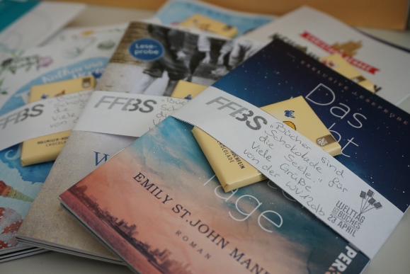 Darüber hinaus fanden alle Lehrer am 23.April, dem eigentlichen Welttag des Buches, in ihren Fächern eine liebvoll zusammengestellte Auswahl an Leseproben mit persönlichen Grüßen der beiden Klassen.